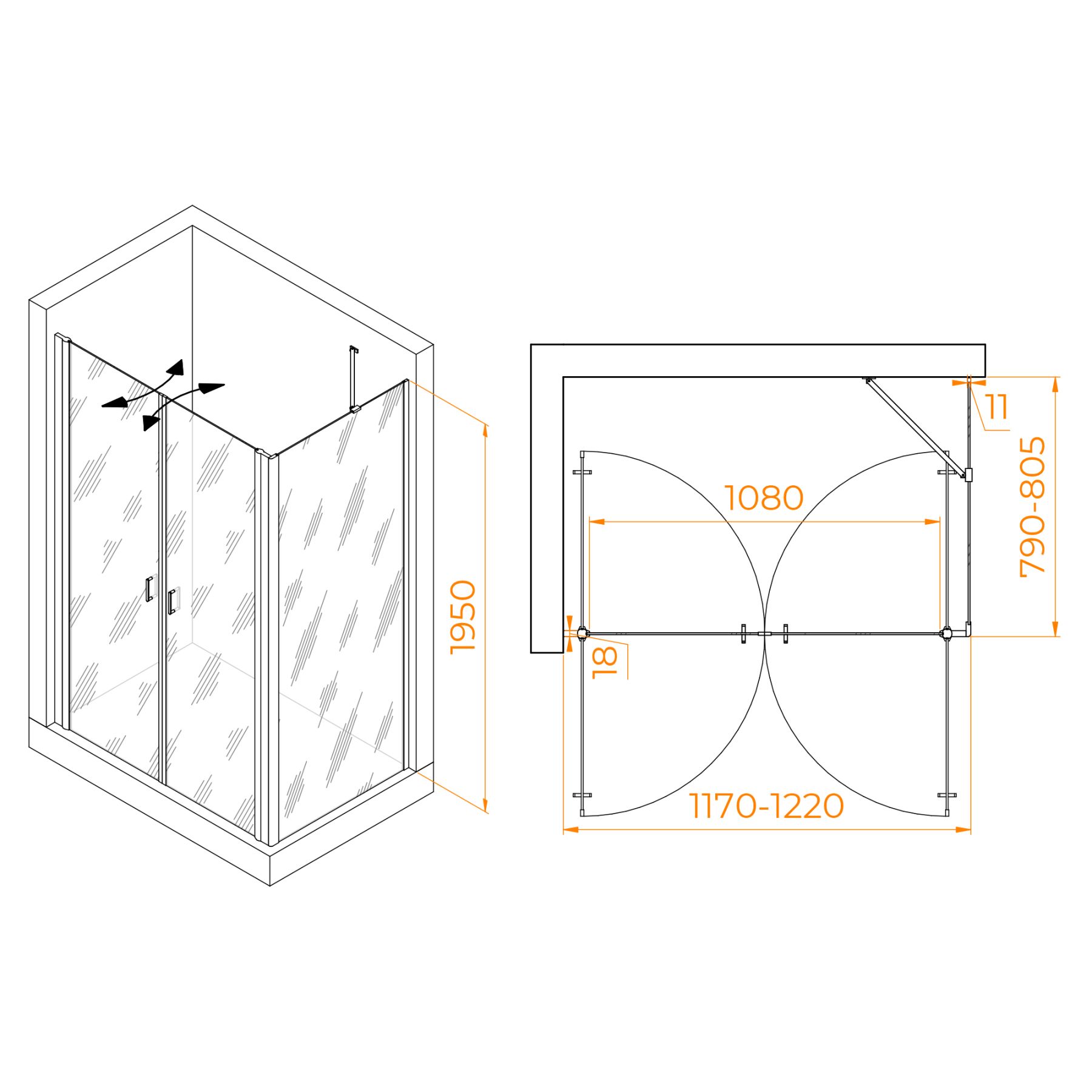 Душевой уголок RGW PA-144B (PA-104B+Z-050-2B+O-204B) 060814428-14 120x80см чёрный