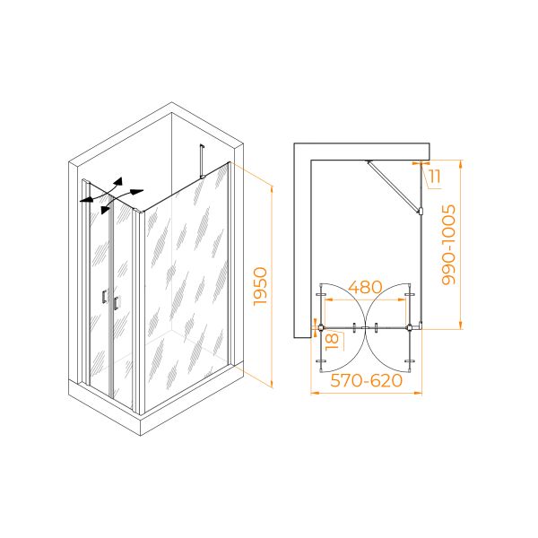 Душевой уголок RGW PA-144B (PA-104B+Z-050-2B+O-204B) 060814460-14 60x100см чёрный