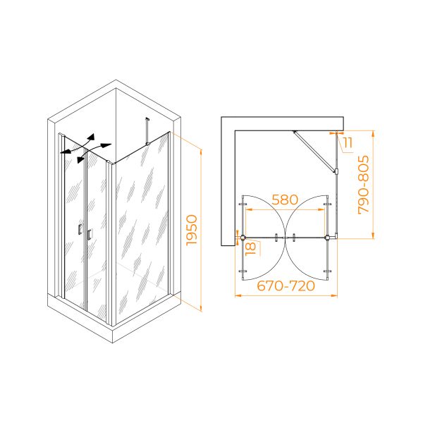 Душевой уголок RGW PA-144B (PA-104B+Z-050-2B+O-204B) 060814478-14 70x80см чёрный