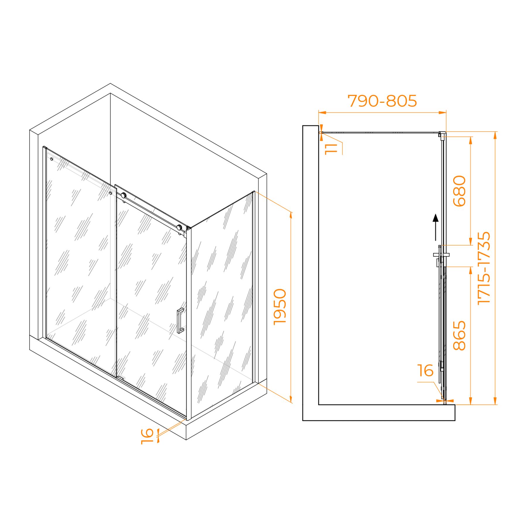 Душевой уголок RGW TO-44-1B (TO-14B + Z-060-2B) 020744178-14 170x80см чёрный