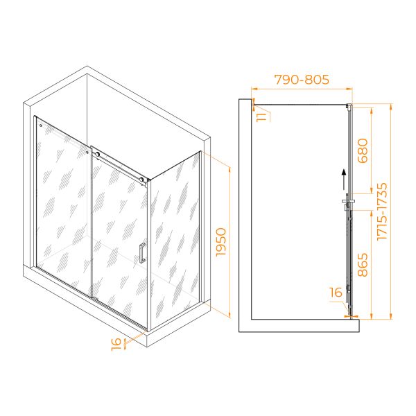 Душевой уголок RGW TO-44B (TO-14B + Z-050-2B) 02074478-14 170x80см чёрный