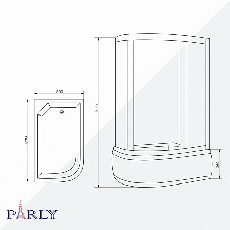Душевой уголок с поддоном PARLY ZFM1201B R (120х80х195)