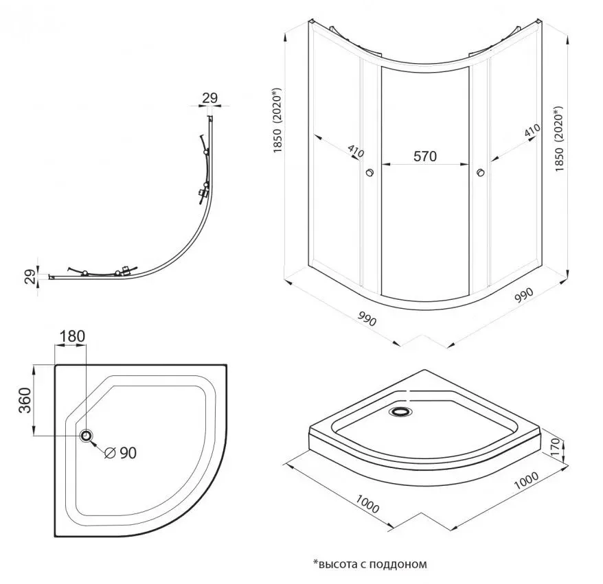 Размер: 100 x 100 x 185 см Высота с поддоном: 202 см Конструкция дверей: раздвижная К... Подробнее