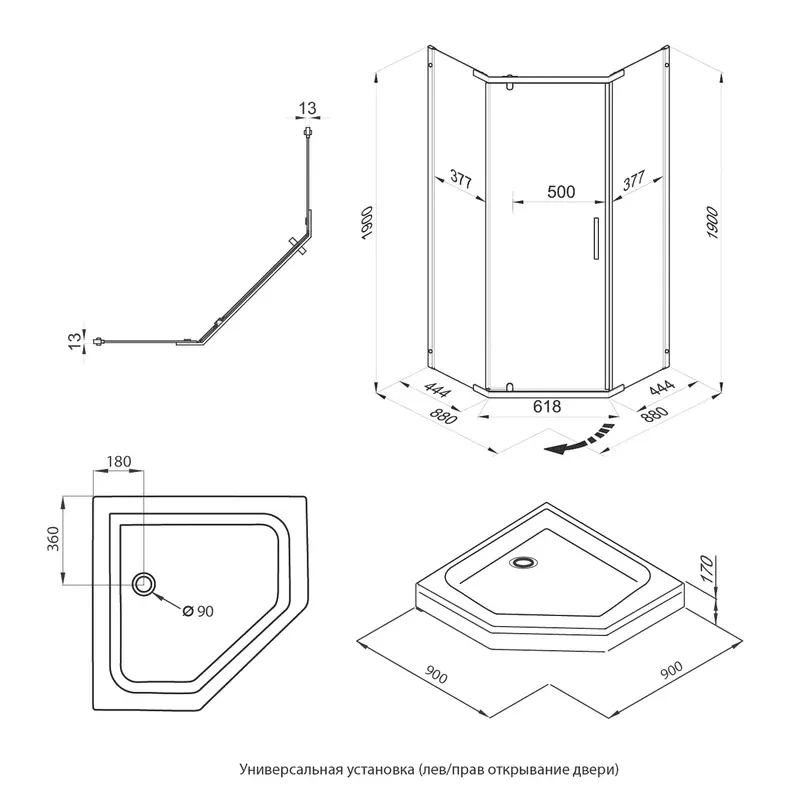 Душевой уголок Triton Дека -Голд Щ0000073927 90x90 см профиль золото стекло прозрачное купить
