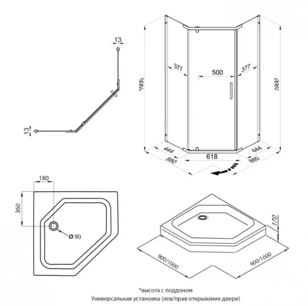 Душевой уголок Triton Дека-Хром. Без поддона.