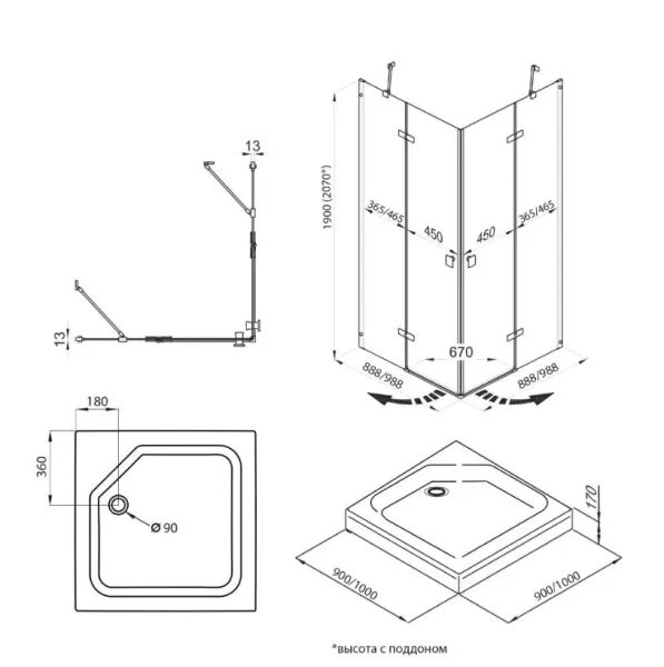 • Размеры: 90х90х207