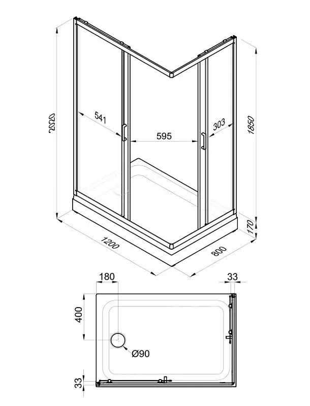 • Высота с поддоном: 202 см
