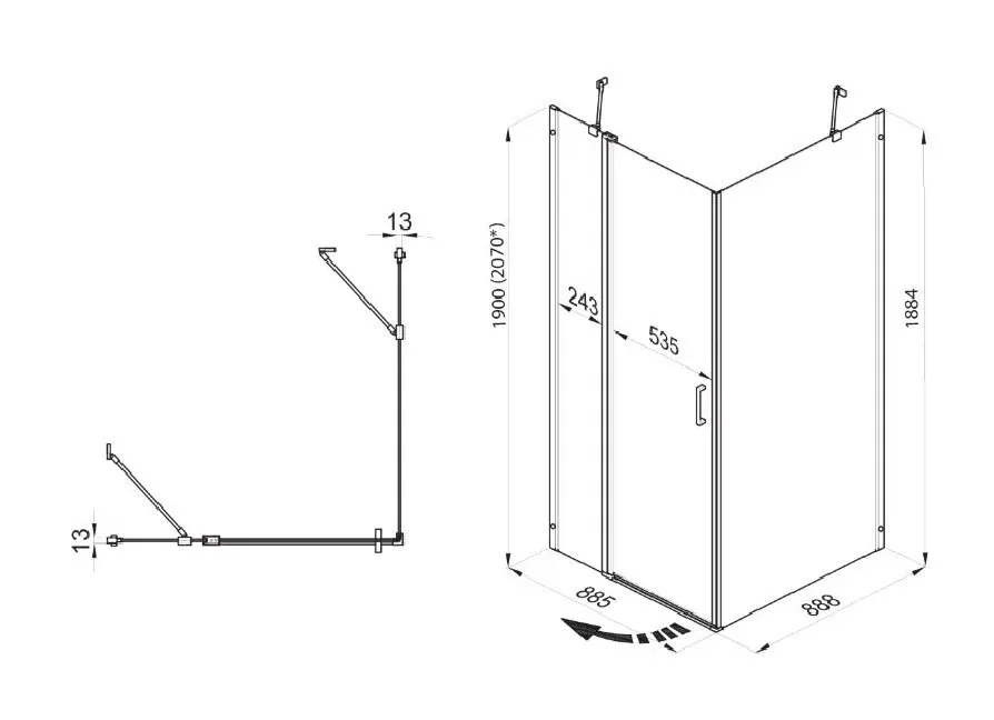 Душевой уголок Без поддона Размер: 90 x 90 x 190 см Конструкция дверей: раcпашная ... Подробнее