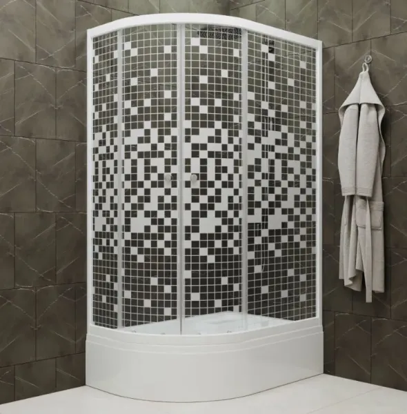 Душевой уголок Triton Коралл Щ0000038529 правый 120x80 см профиль белый стекло мозаика