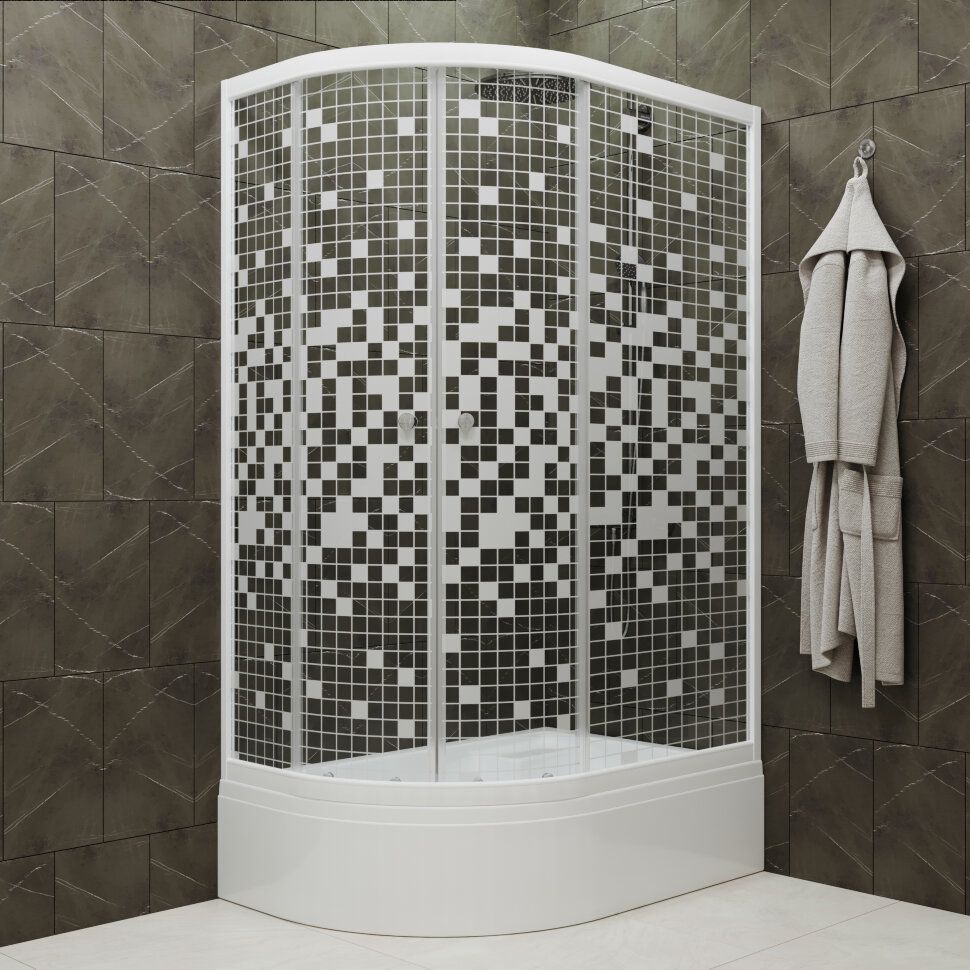 Душевой уголок Triton Коралл Щ0000061783 правый 120x80 см профиль белый стекло мозаика