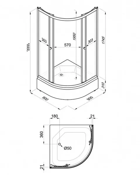 • Высота с поддоном: 205.5 см