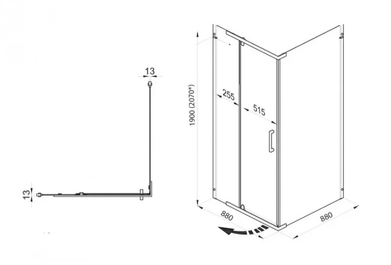 Душевой уголок Без поддона Размер: 90 x 90 x 190 см Конструкция дверей: раcпашная ... Подробнее