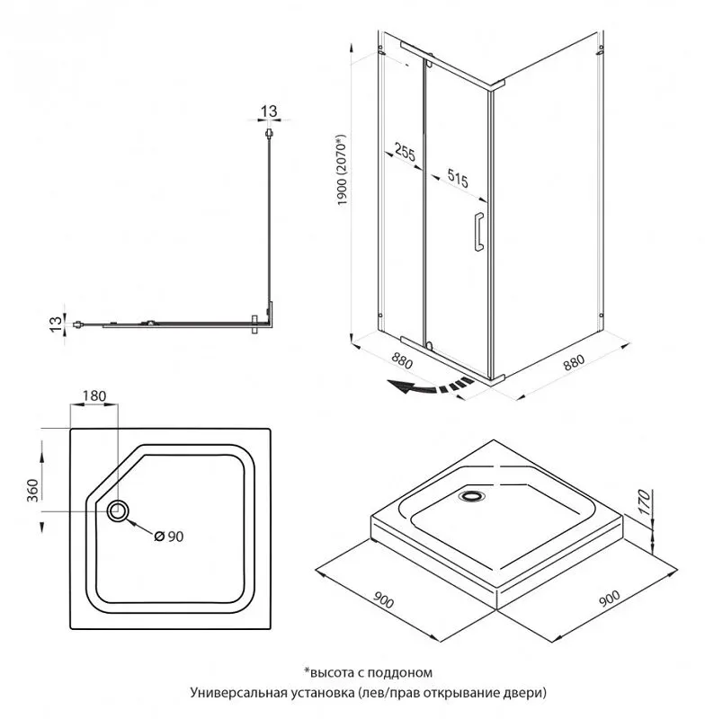 Высота с поддоном: 207 см