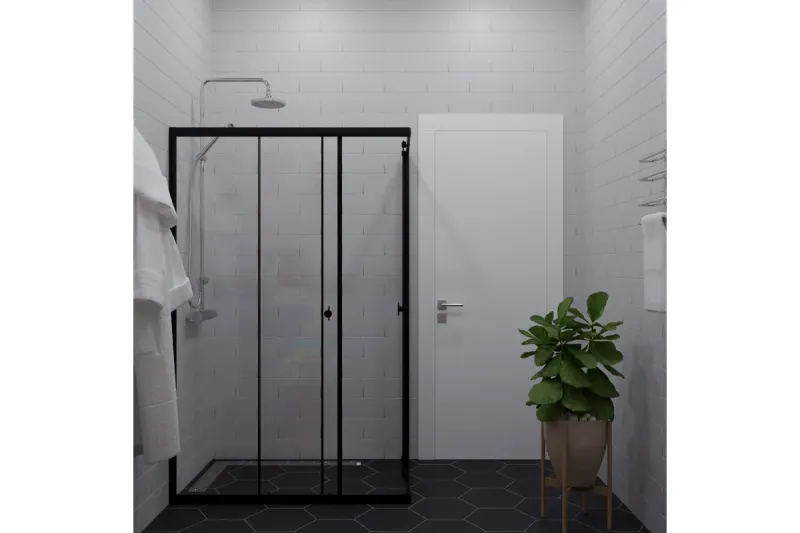 Черный профиль в сочетании с закаленным стеклом толщиной 4 мм, раздвижной механизм дверей и универсальная установка – всё это создаст неповторимую атмосферу в вашей ванной!