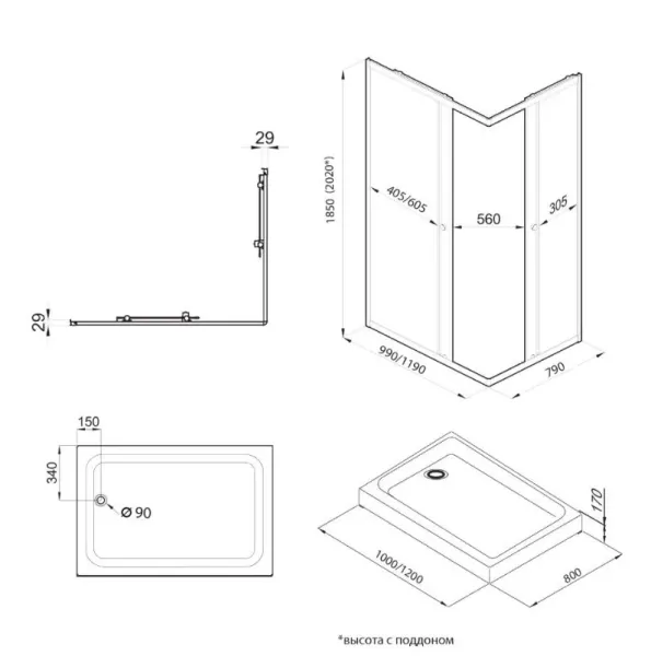 • Размеры: 120х80х185