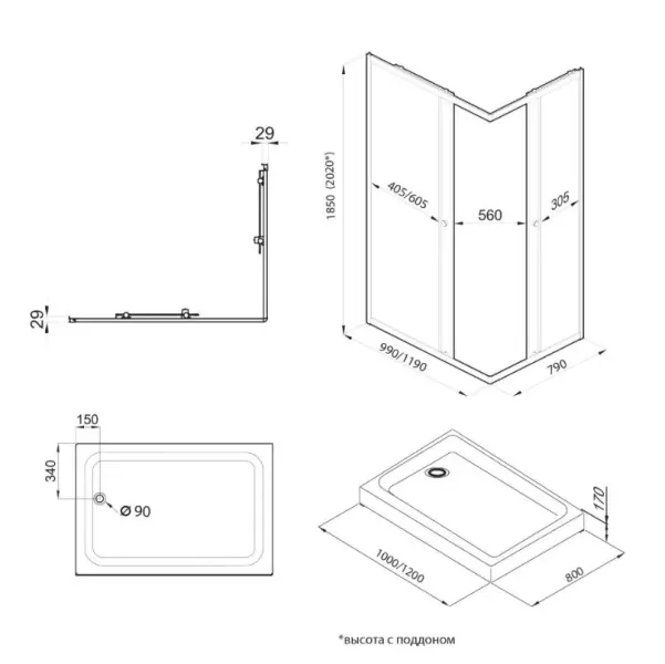 Душевой уголок Triton Вента Щ0000057858 100x80 см профиль чёрный стекло прозрачное купить