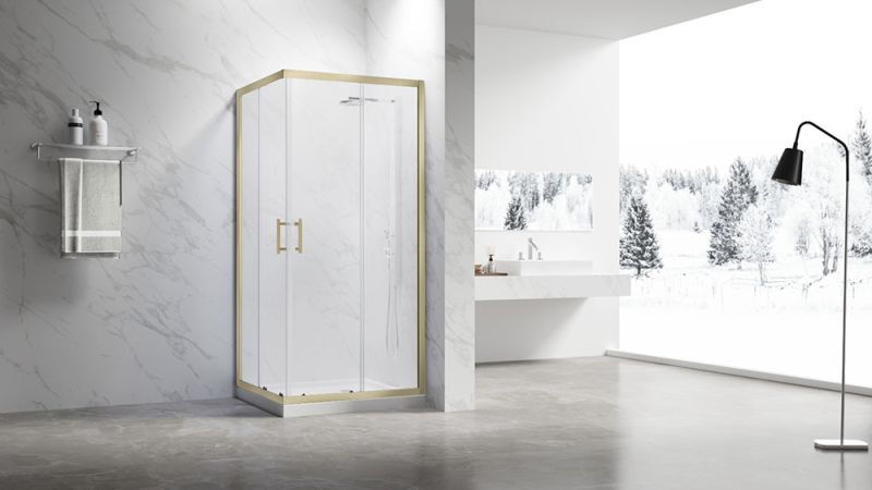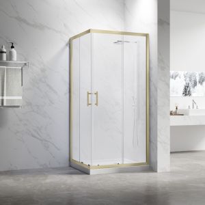 Душевой уголок Veconi Rovigo RV-27G, 800x800x1900, золото брашинг, прозрачное стекло купить