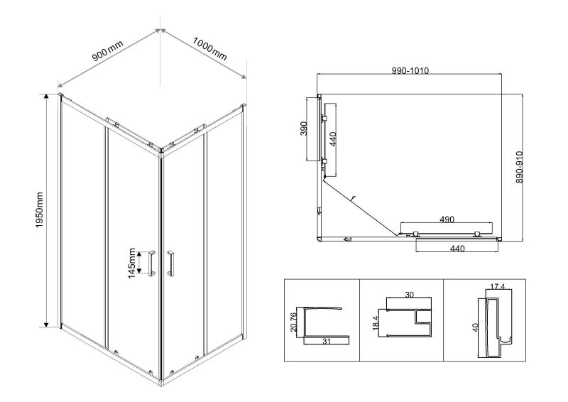 990-1010 x 890-910Двойные верхние и одинарные нижние ролики