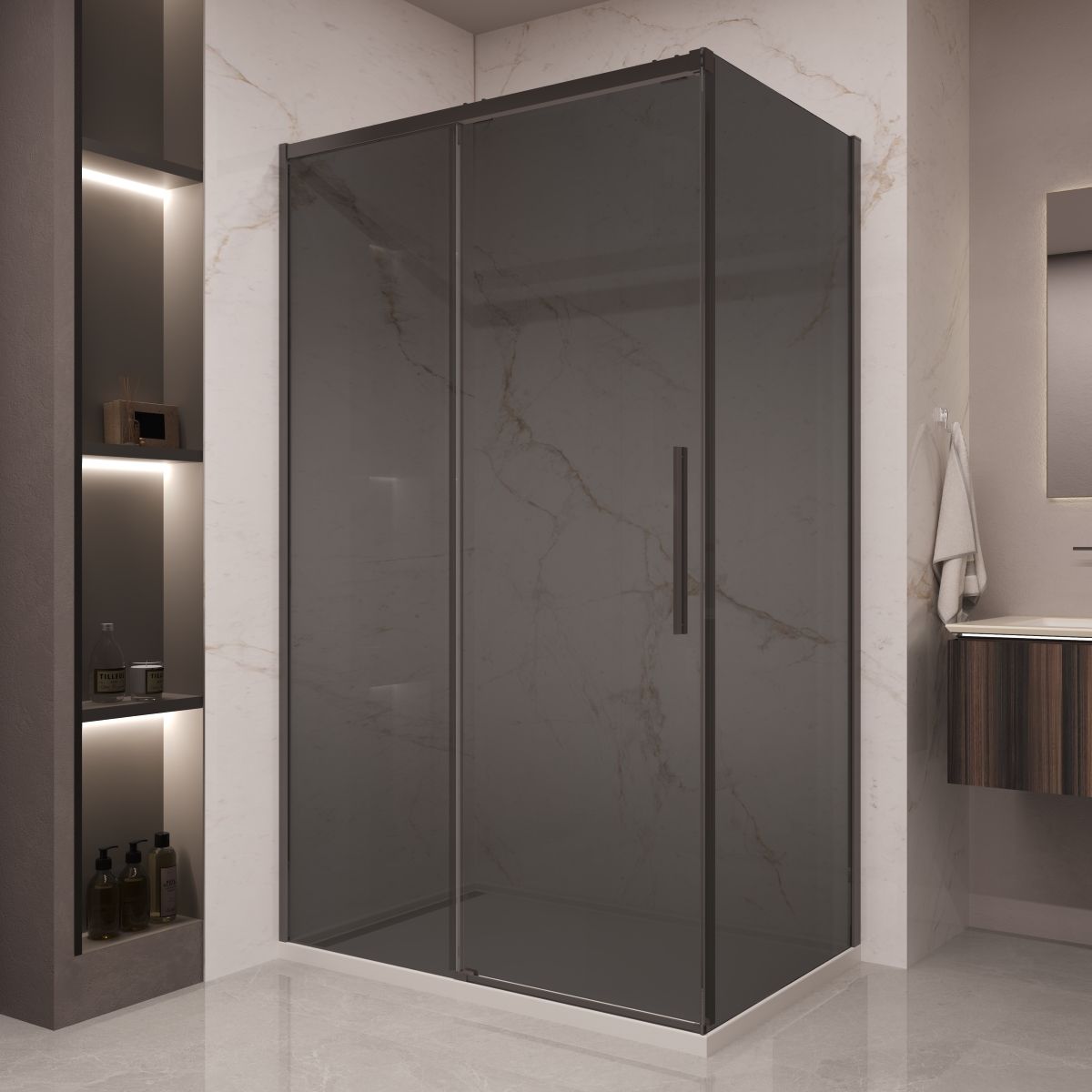 Душевой уголок Vincea Stella VSR-1ST9012CGB, 1200*900, черный, стекло тонированное
