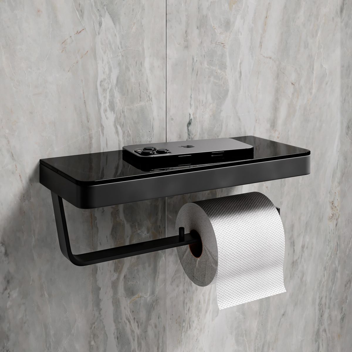Двойной держатель для туалетной бумаги Lemark Glass Line 9722042 с полкой чёрный/чёрное стекло