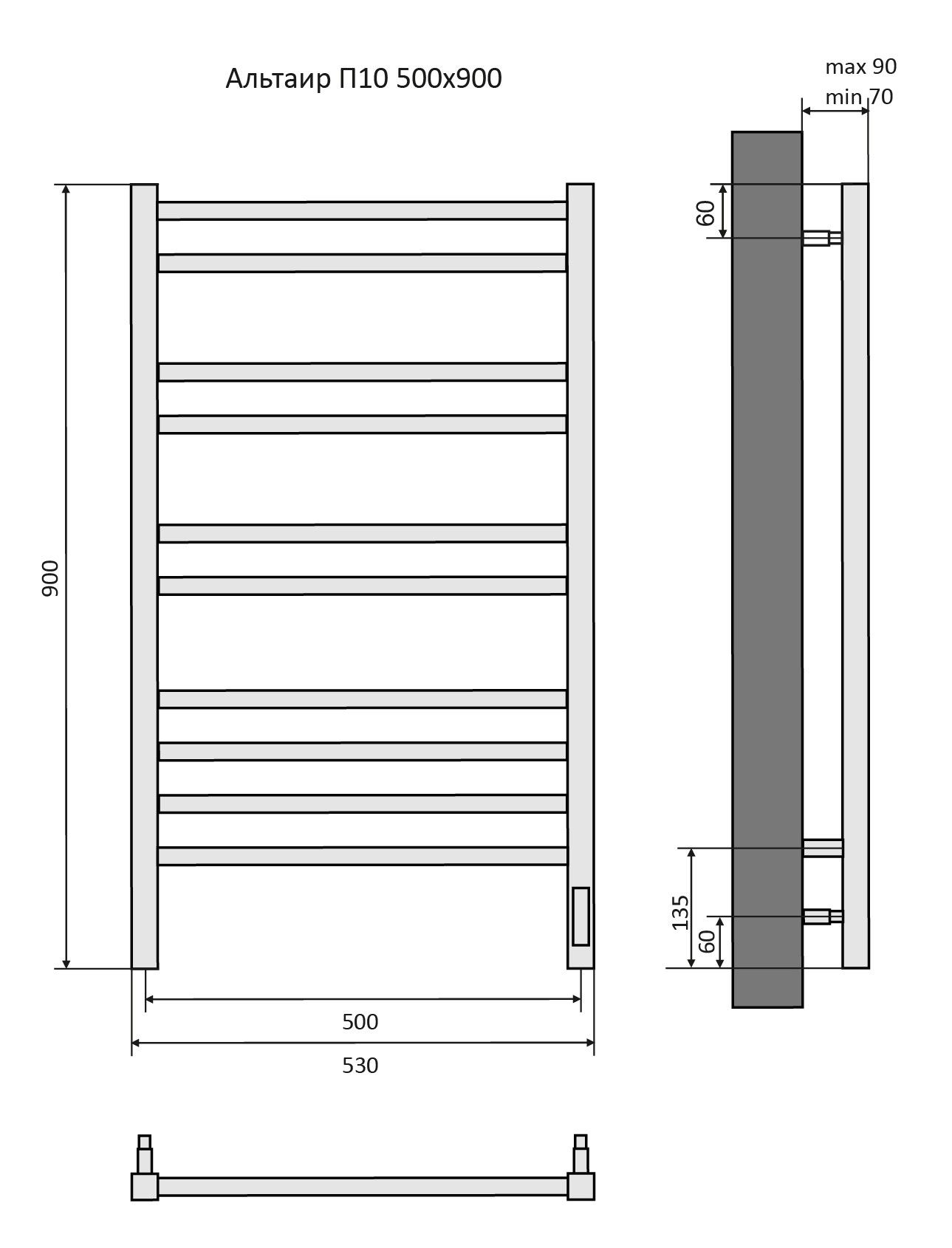 Полотенцесушитель электрический Aquatek (Акватек) Альтаир П10 500х900 мм, подключение скрытое к сети электропитания / электропровод с вилкой, с терморегулятором и таймером quick touch, нержавеющая сталь AISI 201, гарантия 5 летХарактеристики:30х30/20х20,ВСТРОЕННЫЙ ДИММЕРКомплектация:полотенцесушитель;