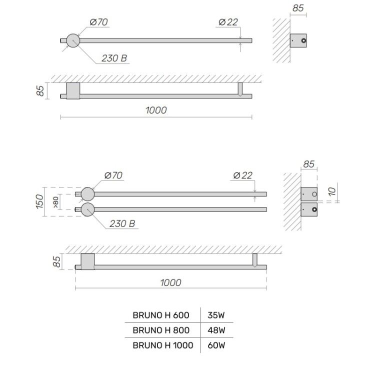 Broner Bruno NF BR.007.080.0000.S Полотенцесушитель электрический 800 мм (сатин). Без кнопки вкл/выкл. 70х800х60. Вертикальный или горизонтальный монтаж. Дизайнерский полотенцесушитель. Простота, элегантность и функциональность — вот ключевые характеристики электрического вертикального полотенцесушителя BRUNO. П/с Бруно органично впишется в любой интерьер, будь то миниатюрная ванная комната или просторное помещение. Он отличается высокой энергоэффективностью, так как его расход электроэнергии сравним с обычной лампочкой. Вы можете заказать этот стильный аксессуар в любом цвете по шкале RAL. Номинальное напряжение 220В, номинальная температура поверхности полотенцесушителя 65±5 , режим работы постоянный, время разогрева 10-15 минут, низкое энергопотребление, масса нагрузки на полотенцесушитель не более 5 кг, материал корпуса нержавеющая сталь AISI304. КОМПЛЕКТ ПОСТАВКИ: полотенцесушитель электрический -1шт. Набор деталей и инструментов для настенного крепления – 1шт. Паспорт, упаковка (плёнка полиэтиленовая, картонная коробка) - 1шт. Срок службы 10 лет. Гарантия 1 год, Россия.
