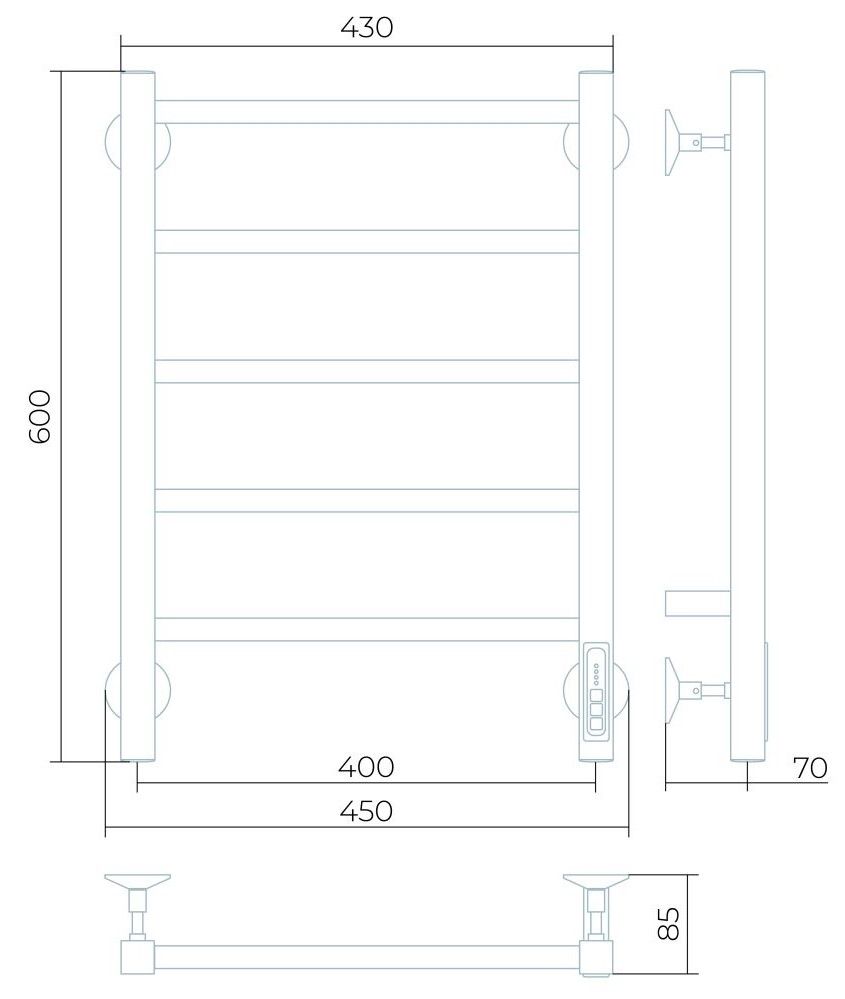 Заглушки на концах стоек, тип диммера - кнопочный (Quick Touch), крепления к стене.