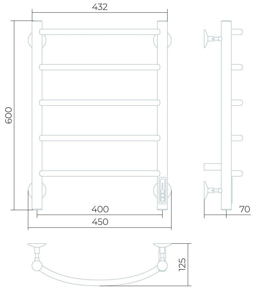 Заглушки на концах стоек, тип диммера - кнопочный (Quick Touch), крепления к стене.