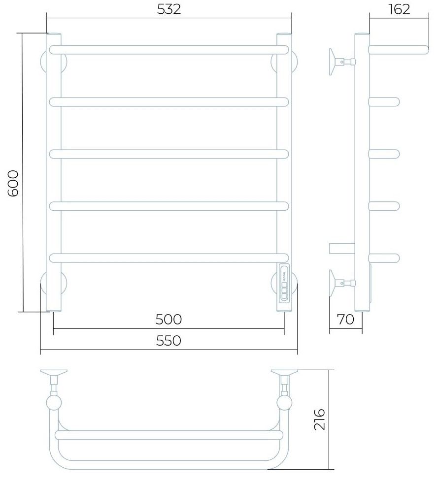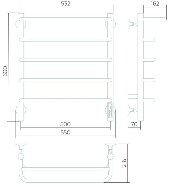 Электрический полотенцесушитель Larusso Стандарт П5 50x60см с полкой чёрный матовый 4670078536617