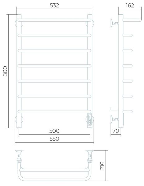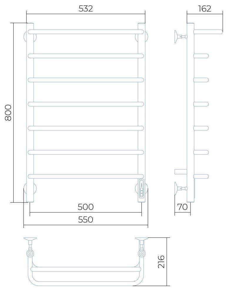 Электрический полотенцесушитель Larusso Стандарт П7 50x80см с полкой чёрный матовый 4670078536600