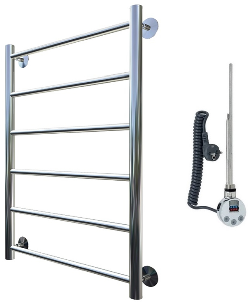 Внимание! Для скрытого монтажа электропроводки необходимо приобрести комплект скрытого подключения.Полотенцесушитель электрический комплектуется ТЭНом с терморегулятором и таймером.Изделие производится из нержавеющей стали AISI 201. Вертикальные трубы d -32 мм., для горизонтальных вставок используется труба d — 18 мм.Нагревательным элементом в полотенцесушителе является ТЭН. Полотенцесушитель заполнен бытовым антифризомЭкономичность: ТЭН нагревает антифриз до нужной температуры и выключается, далее при остывании полотенцесушителя он включается опять. Таким образом он работает не постоянно и получается, что ТЭН потребляет электричество не 300 Вт, а порядка 100 — 150 ВтМощность электрического прибора порядка 100 Вт при стоимости 1 Вт — 5 руб несложно посчитать: 100Вт х 24 = 2,4 кВт в сутки. Стоимость эксплуатации изделия за сутки 2,4 кВт х 5 руб. = 12 руб. При максимальной температуре расход электричества за 30 дней составит порядка 360 руб. При условии если сушка работает круглосуточно на максимальной температуре.Удобство монтажа: Полотенцесушитель крепится к стене на четыре держателя. Изначально ТЭН не установлен в полотенцесушитель для безопасной транспортировки, его можно установить, как справа, так и слева предварительно перевернув полотенцесушитель вверх ногами и выкрутив заглушку с нужной стороны на место в которое установится ТЭН.Примечание. Внимательно изучите инструкцию по установке ТЭНа!Скрытое подключение: Для скрытого монтажа электропроводки необходимо приобрести комплект скрытого подключения.Подключение в розетку: В комплекте с ТЭНом имеется шнур с вилкой, который будет необходим при подключении к розетке.