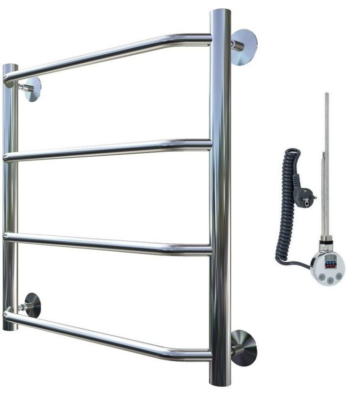 Внимание! Для скрытого монтажа электропроводки необходимо приобрести комплект скрытого подключения.Полотенцесушитель электрический комплектуется ТЭНом с терморегулятором и таймером.Изделие производится из нержавеющей стали AISI 201. Вертикальные трубы d -32 мм., для горизонтальных вставок используется труба d — 18 мм.Нагревательным элементом в полотенцесушителе является ТЭН. Полотенцесушитель заполнен бытовым антифризомЭкономичность: ТЭН нагревает антифриз до нужной температуры и выключается, далее при остывании полотенцесушителя он включается опять. Таким образом он работает не постоянно и получается, что ТЭН потребляет электричество не 300 Вт, а порядка 100 — 150 ВтМощность электрического прибора порядка 100 Вт при стоимости 1 Вт — 5 руб несложно посчитать: 100Вт х 24 = 2,4 кВт в сутки. Стоимость эксплуатации изделия за сутки 2,4 кВт х 5 руб. = 12 руб. При максимальной температуре расход электричества за 30 дней составит порядка 360 руб. При условии если сушка работает круглосуточно на максимальной температуре.Удобство монтажа: Полотенцесушитель крепится к стене на четыре держателя. Изначально ТЭН не установлен в полотенцесушитель для безопасной транспортировки, его можно установить, как справа, так и слева предварительно перевернув полотенцесушитель вверх ногами и выкрутив заглушку с нужной стороны на место в которое установится ТЭН.Примечание. Внимательно изучите инструкцию по установке ТЭНа!Скрытое подключение: Для скрытого монтажа электропроводки необходимо приобрести комплект скрытого подключения.Подключение в розетку: В комплекте с ТЭНом имеется шнур с вилкой, который будет необходим при подключении к розетке.