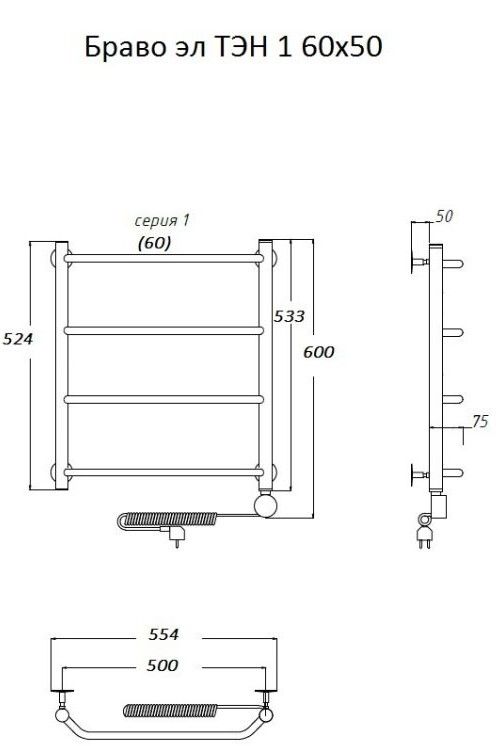 Электрический полотенцесушитель Тругор Браво 1 60x50см хром Браво1/элТЭН6050
