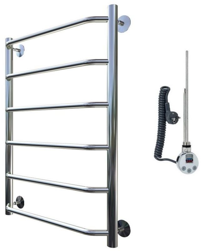 Внимание! Для скрытого монтажа электропроводки необходимо приобрести комплект скрытого подключения.Полотенцесушитель электрический комплектуется ТЭНом с терморегулятором и таймером.Изделие производится из нержавеющей стали AISI 201. Вертикальные трубы d -32 мм., для горизонтальных вставок используется труба d — 18 мм.Нагревательным элементом в полотенцесушителе является ТЭН. Полотенцесушитель заполнен бытовым антифризомЭкономичность: ТЭН нагревает антифриз до нужной температуры и выключается, далее при остывании полотенцесушителя он включается опять. Таким образом он работает не постоянно и получается, что ТЭН потребляет электричество не 300 Вт, а порядка 100 — 150 ВтМощность электрического прибора порядка 100 Вт при стоимости 1 Вт — 5 руб несложно посчитать: 100Вт х 24 = 2,4 кВт в сутки. Стоимость эксплуатации изделия за сутки 2,4 кВт х 5 руб. = 12 руб. При максимальной температуре расход электричества за 30 дней составит порядка 360 руб. При условии если сушка работает круглосуточно на максимальной температуре.Удобство монтажа: Полотенцесушитель крепится к стене на четыре держателя. Изначально ТЭН не установлен в полотенцесушитель для безопасной транспортировки, его можно установить, как справа, так и слева предварительно перевернув полотенцесушитель вверх ногами и выкрутив заглушку с нужной стороны на место в которое установится ТЭН.Примечание. Внимательно изучите инструкцию по установке ТЭНа!Скрытое подключение: Для скрытого монтажа электропроводки необходимо приобрести комплект скрытого подключения.Подключение в розетку: В комплекте с ТЭНом имеется шнур с вилкой, который будет необходим при подключении к розетке.