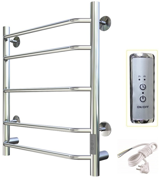 Внимание! Для скрытого монтажа электропроводки необходимо приобрести комплект скрытого подключения. Полотенцесушитель электрический комплектуется ТЭНом с терморегулятором и таймером. Изделие производится из нержавеющей стали AISI 201. Вертикальные трубы d -32 мм., для горизонтальных вставок используется труба d — 18 мм. Нагревательным элементом в полотенцесушителе является ТЭН. Полотенцесушитель заполнен бытовым антифризом.Экономичность: ТЭН нагревает антифриз до нужной температуры и выключается, далее при остывании полотенцесушителя он включается опять. Таким образом он работает не постоянно, и получается, что ТЭН потребляет электричество не 300 Вт, а порядка 100 — 150 Вт.Мощность электрического прибора порядка 100 Вт при стоимости 1 Вт — 5 руб несложно посчитать: 100Вт х 24 = 2,4 кВт в сутки. Стоимость эксплуатации изделия за сутки 2,4 кВт х 5 руб. = 12 руб. При максимальной температуре расход электричества за 30 дней составит порядка 360 руб. При условии если сушка работает круглосуточно на максимальной температуре.Удобство монтажа: Полотенцесушитель крепится к стене на четыре держателя. Изначально ТЭН не установлен в полотенцесушитель для безопасной транспортировки, его можно установить, как справа, так и слева предварительно перевернув полотенцесушитель вверх ногами и выкрутив заглушку с нужной стороны на место в которое установится ТЭН.Примечание. Внимательно изучите инструкцию по установке ТЭНа!Скрытое подключение: Для скрытого монтажа электропроводки необходимо приобрести комплект скрытого подключения.Подключение в розетку: В комплекте с ТЭНом имеется шнур с вилкой, который будет необходим при подключении к розетке.