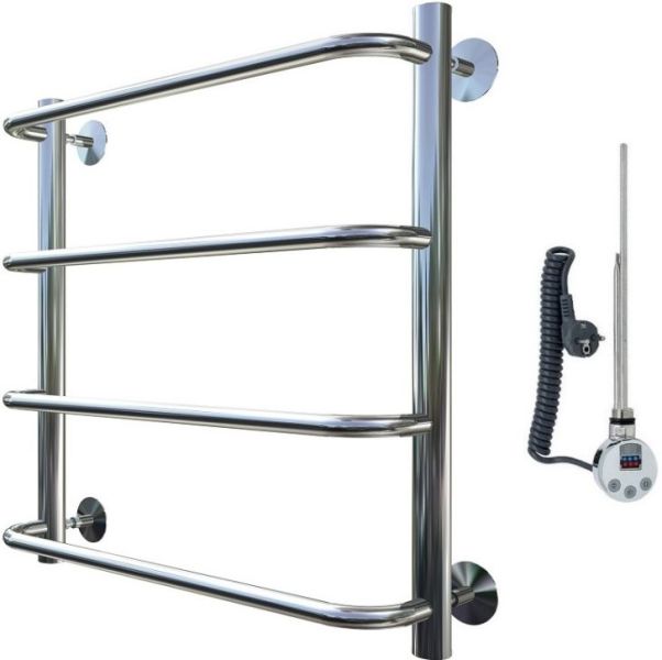 Внимание! Для скрытого монтажа электропроводки необходимо приобрести комплект скрытого подключения.Полотенцесушитель электрический комплектуется ТЭНом с терморегулятором и таймером.Изделие производится из нержавеющей стали AISI 201. Вертикальные трубы d -32 мм., для горизонтальных вставок используется труба d — 18 мм.Нагревательным элементом в полотенцесушителе является ТЭН. Полотенцесушитель заполнен бытовым антифризомЭкономичность: ТЭН нагревает антифриз до нужной температуры и выключается, далее при остывании полотенцесушителя он включается опять. Таким образом он работает не постоянно и получается, что ТЭН потребляет электричество не 300 Вт, а порядка 100 — 150 ВтМощность электрического прибора порядка 100 Вт при стоимости 1 Вт — 5 руб несложно посчитать: 100Вт х 24 = 2,4 кВт в сутки. Стоимость эксплуатации изделия за сутки 2,4 кВт х 5 руб. = 12 руб. При максимальной температуре расход электричества за 30 дней составит порядка 360 руб. При условии если сушка работает круглосуточно на максимальной температуре.Удобство монтажа: Полотенцесушитель крепится к стене на четыре держателя. Изначально ТЭН не установлен в полотенцесушитель для безопасной транспортировки, его можно установить, как справа, так и слева предварительно перевернув полотенцесушитель вверх ногами и выкрутив заглушку с нужной стороны на место в которое установится ТЭН.Примечание. Внимательно изучите инструкцию по установке ТЭНа!Скрытое подключение: Для скрытого монтажа электропроводки необходимо приобрести комплект скрытого подключения.Подключение в розетку: В комплекте с ТЭНом имеется шнур с вилкой, который будет необходим при подключении к розетке.