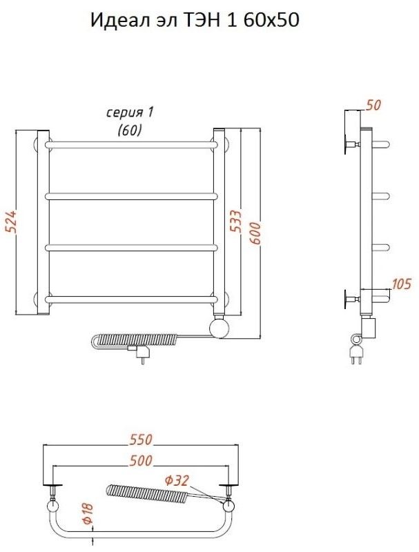 Электрический полотенцесушитель Тругор Идеал 1 60x50см хром Идеал1/элТЭН6050