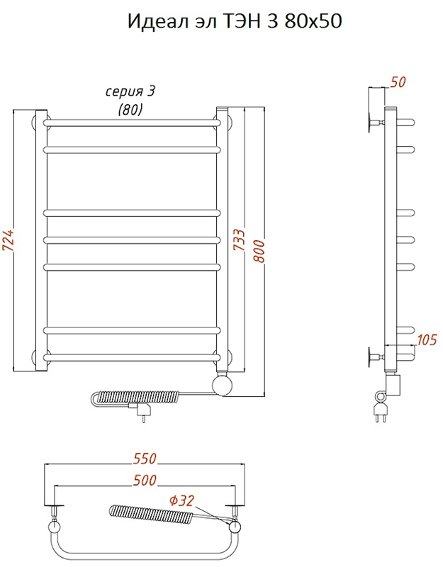 Внимание! Для скрытого монтажа электропроводки необходимо приобрести комплект скрытого подключения.Полотенцесушитель электрический комплектуется ТЭНом с терморегулятором и таймером.Изделие производится из нержавеющей стали AISI 201. Вертикальные трубы d -32 мм., для горизонтальных вставок используется труба d — 18 мм.Нагревательным элементом в полотенцесушителе является ТЭН. Полотенцесушитель заполнен бытовым антифризомЭкономичность: ТЭН нагревает антифриз до нужной температуры и выключается, далее при остывании полотенцесушителя он включается опять. Таким образом он работает не постоянно и получается, что ТЭН потребляет электричество не 300 Вт, а порядка 100 — 150 ВтМощность электрического прибора порядка 100 Вт при стоимости 1 Вт — 5 руб несложно посчитать: 100Вт х 24 = 2,4 кВт в сутки. Стоимость эксплуатации изделия за сутки 2,4 кВт х 5 руб. = 12 руб. При максимальной температуре расход электричества за 30 дней составит порядка 360 руб. При условии если сушка работает круглосуточно на максимальной температуре.Удобство монтажа: Полотенцесушитель крепится к стене на четыре держателя. Изначально ТЭН не установлен в полотенцесушитель для безопасной транспортировки, его можно установить, как справа, так и слева предварительно перевернув полотенцесушитель вверх ногами и выкрутив заглушку с нужной стороны на место в которое установится ТЭН.Примечание. Внимательно изучите инструкцию по установке ТЭНа!Скрытое подключение: Для скрытого монтажа электропроводки необходимо приобрести комплект скрытого подключения.Подключение в розетку: В комплекте с ТЭНом имеется шнур с вилкой, который будет необходим при подключении к розетке.