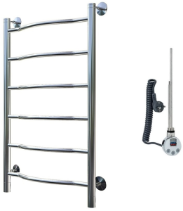 Внимание! Для скрытого монтажа электропроводки необходимо приобрести комплект скрытого подключения.Полотенцесушитель электрический комплектуется ТЭНом с терморегулятором и таймером.Изделие производится из нержавеющей стали AISI 201. Вертикальные трубы d -32 мм., для горизонтальных вставок используется труба d — 18 мм.Нагревательным элементом в полотенцесушителе является ТЭН. Полотенцесушитель заполнен бытовым антифризомЭкономичность: ТЭН нагревает антифриз до нужной температуры и выключается, далее при остывании полотенцесушителя он включается опять. Таким образом он работает не постоянно и получается, что ТЭН потребляет электричество не 300 Вт, а порядка 100 — 150 ВтМощность электрического прибора порядка 100 Вт при стоимости 1 Вт — 5 руб несложно посчитать: 100Вт х 24 = 2,4 кВт в сутки. Стоимость эксплуатации изделия за сутки 2,4 кВт х 5 руб. = 12 руб. При максимальной температуре расход электричества за 30 дней составит порядка 360 руб. При условии если сушка работает круглосуточно на максимальной температуре.Удобство монтажа: Полотенцесушитель крепится к стене на четыре держателя. Изначально ТЭН не установлен в полотенцесушитель для безопасной транспортировки, его можно установить, как справа, так и слева предварительно перевернув полотенцесушитель вверх ногами и выкрутив заглушку с нужной стороны на место в которое установится ТЭН.Примечание. Внимательно изучите инструкцию по установке ТЭНа!Скрытое подключение: Для скрытого монтажа электропроводки необходимо приобрести комплект скрытого подключения.Подключение в розетку: В комплекте с ТЭНом имеется шнур с вилкой, который будет необходим при подключении к розетке.