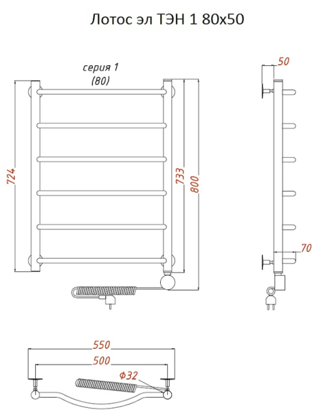 Электрический полотенцесушитель Тругор Лотос 1 80x50см хром Лотос1/элТЭН8050