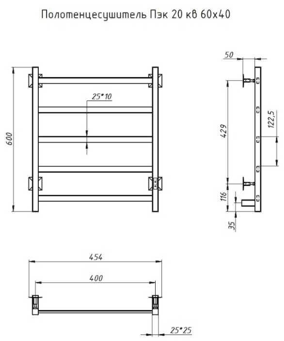 Электрический полотенцесушитель Тругор Пэк 20кв 60x40см хром Пэк20кв/6040