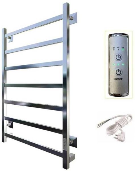 Внимание! Для скрытого монтажа электропроводки необходимо приобрести комплект скрытого подключения. Полотенцесушитель электрический комплектуется ТЭНом с терморегулятором и таймером. Изделие производится из нержавеющей стали AISI 201. Вертикальные трубы d -32 мм., для горизонтальных вставок используется труба d — 18 мм. Нагревательным элементом в полотенцесушителе является ТЭН. Полотенцесушитель заполнен бытовым антифризом.Экономичность: ТЭН нагревает антифриз до нужной температуры и выключается, далее при остывании полотенцесушителя он включается опять. Таким образом он работает не постоянно, и получается, что ТЭН потребляет электричество не 300 Вт, а порядка 100 — 150 Вт.Мощность электрического прибора порядка 100 Вт при стоимости 1 Вт — 5 руб несложно посчитать: 100Вт х 24 = 2,4 кВт в сутки. Стоимость эксплуатации изделия за сутки 2,4 кВт х 5 руб. = 12 руб. При максимальной температуре расход электричества за 30 дней составит порядка 360 руб. При условии если сушка работает круглосуточно на максимальной температуре.Удобство монтажа: Полотенцесушитель крепится к стене на четыре держателя. Изначально ТЭН не установлен в полотенцесушитель для безопасной транспортировки, его можно установить, как справа, так и слева предварительно перевернув полотенцесушитель вверх ногами и выкрутив заглушку с нужной стороны на место в которое установится ТЭН.Примечание. Внимательно изучите инструкцию по установке ТЭНа!Скрытое подключение: Для скрытого монтажа электропроводки необходимо приобрести комплект скрытого подключения.Подключение в розетку: В комплекте с ТЭНом имеется шнур с вилкой, который будет необходим при подключении к розетке.