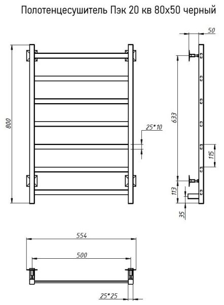 Электрический полотенцесушитель Тругор Пэк 20кв 80x50см чёрный Пэк20кв/8050черный