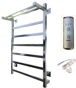 Внимание! Для скрытого монтажа электропроводки необходимо приобрести комплект скрытого подключения. Полотенцесушитель электрический комплектуется ТЭНом с терморегулятором и таймером. Изделие производится из нержавеющей стали AISI 201. Вертикальные трубы d -32 мм., для горизонтальных вставок используется труба d — 18 мм. Нагревательным элементом в полотенцесушителе является ТЭН. Полотенцесушитель заполнен бытовым антифризом.Экономичность: ТЭН нагревает антифриз до нужной температуры и выключается, далее при остывании полотенцесушителя он включается опять. Таким образом он работает не постоянно, и получается, что ТЭН потребляет электричество не 300 Вт, а порядка 100 — 150 Вт.Мощность электрического прибора порядка 100 Вт при стоимости 1 Вт — 5 руб несложно посчитать: 100Вт х 24 = 2,4 кВт в сутки. Стоимость эксплуатации изделия за сутки 2,4 кВт х 5 руб. = 12 руб. При максимальной температуре расход электричества за 30 дней составит порядка 360 руб. При условии если сушка работает круглосуточно на максимальной температуре.Удобство монтажа: Полотенцесушитель крепится к стене на четыре держателя. Изначально ТЭН не установлен в полотенцесушитель для безопасной транспортировки, его можно установить, как справа, так и слева предварительно перевернув полотенцесушитель вверх ногами и выкрутив заглушку с нужной стороны на место в которое установится ТЭН.Примечание. Внимательно изучите инструкцию по установке ТЭНа!Скрытое подключение: Для скрытого монтажа электропроводки необходимо приобрести комплект скрытого подключения.Подключение в розетку: В комплекте с ТЭНом имеется шнур с вилкой, который будет необходим при подключении к розетке.