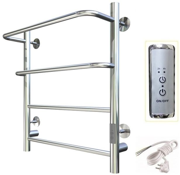 ПЭК — Полотенцесушитель электрический кабельный. Изделие производится из нержавеющей стали AISI 201. Вертикальные трубы d -32 мм., для горизонтальных вставок используется труба d — 18 мм.Нагревательным элементом в полотенцесушителе является греющий кабель — аналог «теплого пола», кабель заправляется внутрь каждой трубы и передает тепло на поверхность изделия. Во включенном состоянии постоянно поддерживается температура 50-600.Экономичность: Полотенцесушитель снабжен панелью управления. Кнопка включения/выключения и таймер на 2 часа и 4 часа, который позволяет включать изделие на ограниченное время. Эта функция дает возможность экономить электричество.Мощность электрического прибора порядка 60W при стоимости 1 кВт — 5 руб несложно посчитать: 60W х 24 = 1,5 кВт в сутки. Стоимость эксплуатации изделия за сутки 1,5 кВт х 5 руб. = 7,5 руб. Максимальный расход электричества за месяц примерно 225 руб. При условии если сушка работает круглосуточно.Удобство монтажа: Полотенцесушитель крепится к стене на четыре держателя. Универсальное исполнение изделия позволяет подключить его, как справа, так и слева.Скрытое подключение: Благодаря приваренным в нижней части вертикальных труб двум распаячным коробкам, в которых соединяется электропроводка, возможно скрытое подключение к электричеству слева и справа.Подключение в розетку: В комплекте также имеется шнур с вилкой, который будет необходим при подключении к розетке.Панель включения:РЕЖИМ №1 — постоянный нагревРЕЖИМ №2 — работа в течение 2 часов с последующим отключением.РЕЖИМ №3 — работа в течение 4 часов с последующим отключением.