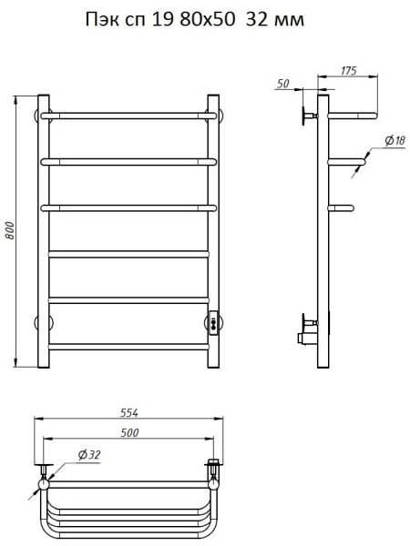 Электрический полотенцесушитель Тругор Пэк сп 19 80x50см хром Пэксп1980х5032 купить