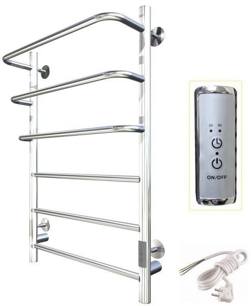 ПЭК — Полотенцесушитель электрический кабельный. Изделие производится из нержавеющей стали AISI 201. Вертикальные трубы d -32 мм., для горизонтальных вставок используется труба d — 18 мм.Нагревательным элементом в полотенцесушителе является греющий кабель — аналог «теплого пола», кабель заправляется внутрь каждой трубы и передает тепло на поверхность изделия. Во включенном состоянии постоянно поддерживается температура 50-600.Экономичность: Полотенцесушитель снабжен панелью управления. Кнопка включения/выключения и таймер на 2 часа и 4 часа, который позволяет включать изделие на ограниченное время. Эта функция дает возможность экономить электричество.Мощность электрического прибора порядка 60W при стоимости 1 кВт — 5 руб несложно посчитать: 60W х 24 = 1,5 кВт в сутки. Стоимость эксплуатации изделия за сутки 1,5 кВт х 5 руб. = 7,5 руб. Максимальный расход электричества за месяц примерно 225 руб. При условии если сушка работает круглосуточно.Удобство монтажа: Полотенцесушитель крепится к стене на четыре держателя. Универсальное исполнение изделия позволяет подключить его, как справа, так и слева.Скрытое подключение: Благодаря приваренным в нижней части вертикальных труб двум распаячным коробкам, в которых соединяется электропроводка, возможно скрытое подключение к электричеству слева и справа.Подключение в розетку: В комплекте также имеется шнур с вилкой, который будет необходим при подключении к розетке.Панель включения:РЕЖИМ №1 — постоянный нагревРЕЖИМ №2 — работа в течение 2 часов с последующим отключением.РЕЖИМ №3 — работа в течение 4 часов с последующим отключением.