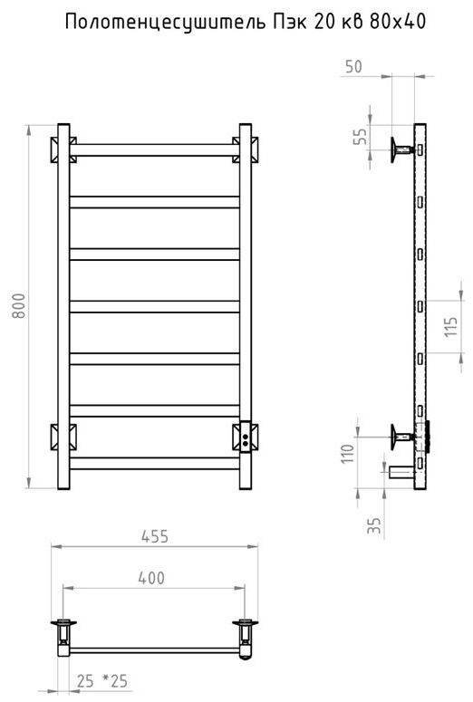 Электрический полотенцесушитель Тругор Пэк сп 20кв 80x40см чёрный Пэксп20кв/8040черныйВГП