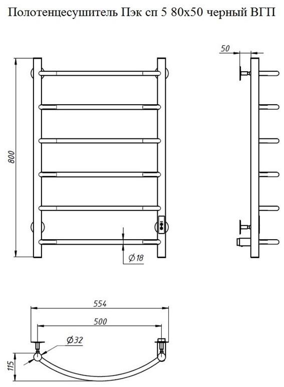 Электрический полотенцесушитель Тругор Пэк сп 5 80x50см чёрный Пэксп5/8050черныйВГП