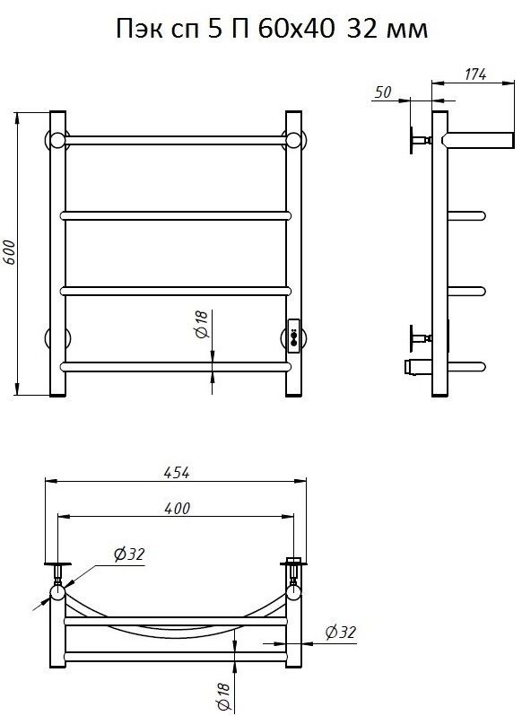 ПЭК — Полотенцесушитель электрический кабельный. Изделие производится из нержавеющей стали AISI 201. Вертикальные трубы d -32 мм., для горизонтальных вставок используется труба d — 18 мм.Нагревательным элементом в полотенцесушителе является греющий кабель — аналог «теплого пола», кабель заправляется внутрь каждой трубы и передает тепло на поверхность изделия. Во включенном состоянии постоянно поддерживается температура 50-600.Экономичность: Полотенцесушитель снабжен панелью управления. Кнопка включения/выключения и таймер на 2 часа и 4 часа, который позволяет включать изделие на ограниченное время. Эта функция дает возможность экономить электричество.Мощность электрического прибора порядка 60W при стоимости 1 кВт — 5 руб несложно посчитать: 60W х 24 = 1,5 кВт в сутки. Стоимость эксплуатации изделия за сутки 1,5 кВт х 5 руб. = 7,5 руб. Максимальный расход электричества за месяц примерно 225 руб. При условии если сушка работает круглосуточно.Удобство монтажа: Полотенцесушитель крепится к стене на четыре держателя. Универсальное исполнение изделия позволяет подключить его, как справа, так и слева.Скрытое подключение: Благодаря приваренным в нижней части вертикальных труб двум распаячным коробкам, в которых соединяется электропроводка, возможно скрытое подключение к электричеству слева и справа.Подключение в розетку: В комплекте также имеется шнур с вилкой, который будет необходим при подключении к розетке.Панель включения:РЕЖИМ №1 — постоянный нагревРЕЖИМ №2 — работа в течение 2 часов с последующим отключением.РЕЖИМ №3 — работа в течение 4 часов с последующим отключением.